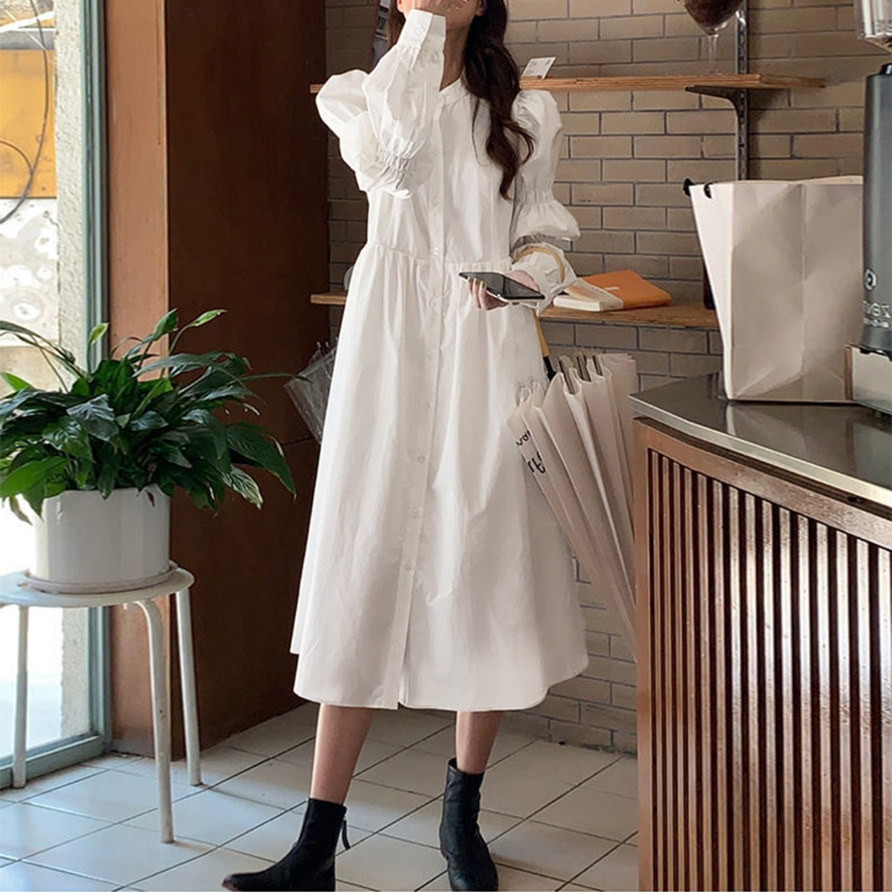 白シャツワンピース