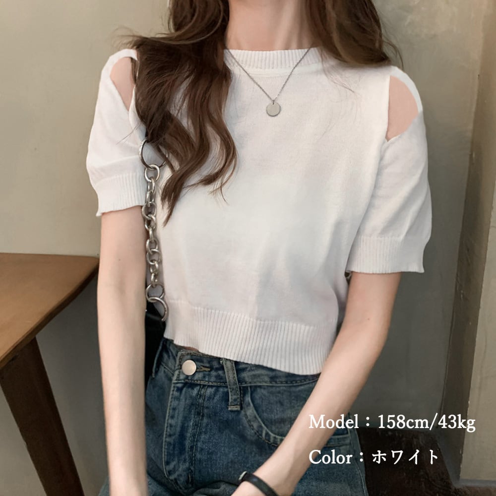 ショート丈ニットトップスへそ出し