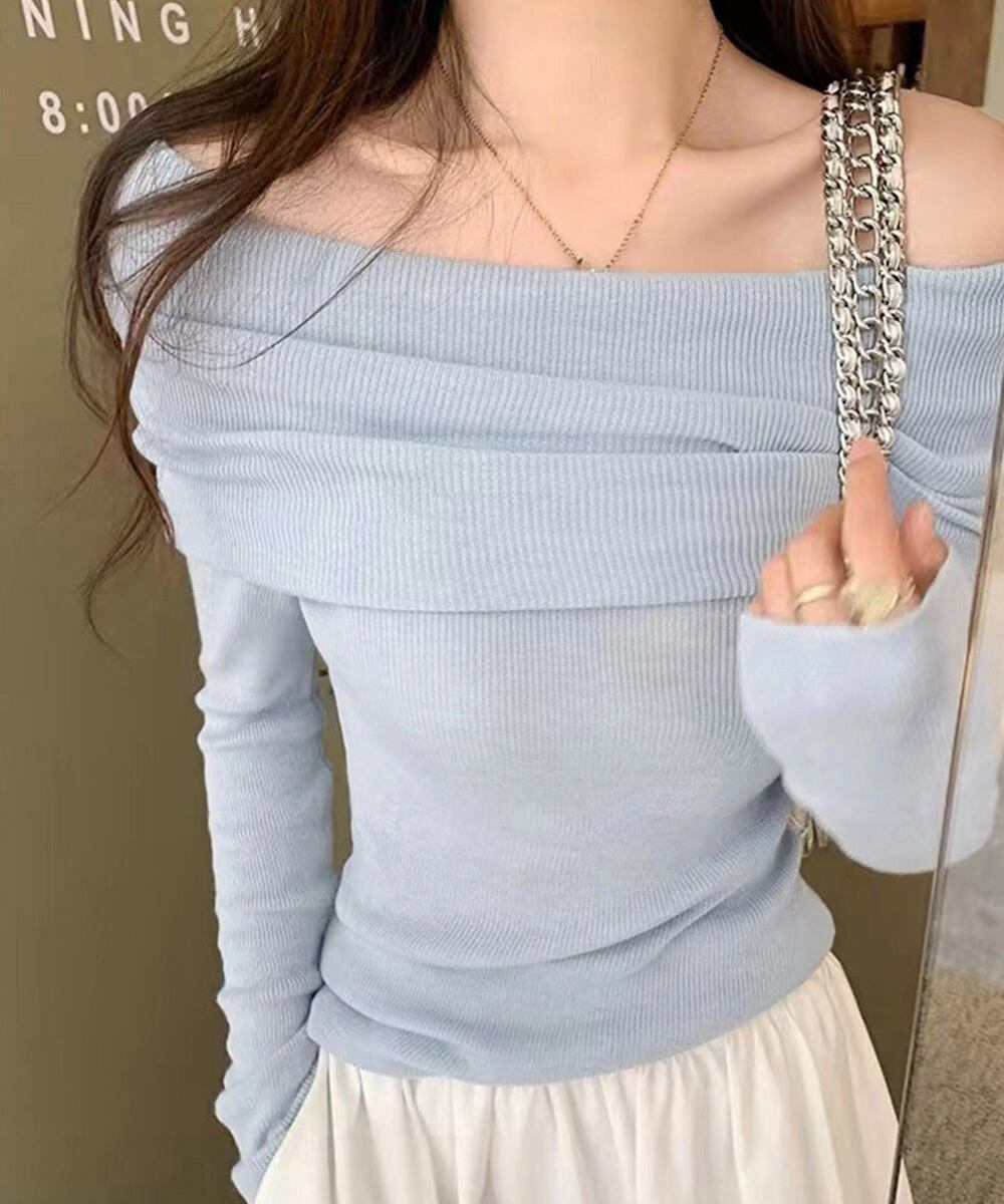 肩出しオフショルダーニットトップス
