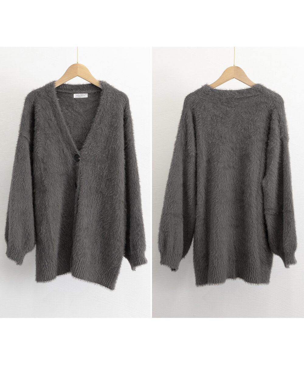 ルーズに羽織ってリラックス感のある着こなしを楽しめるシャギーニットカーディガン