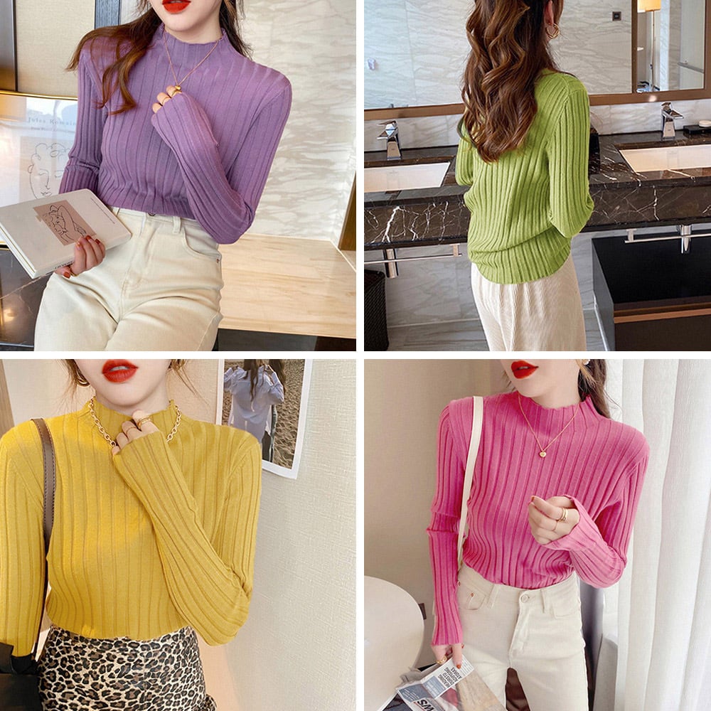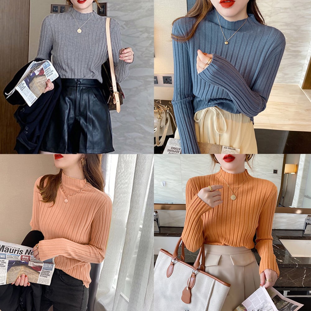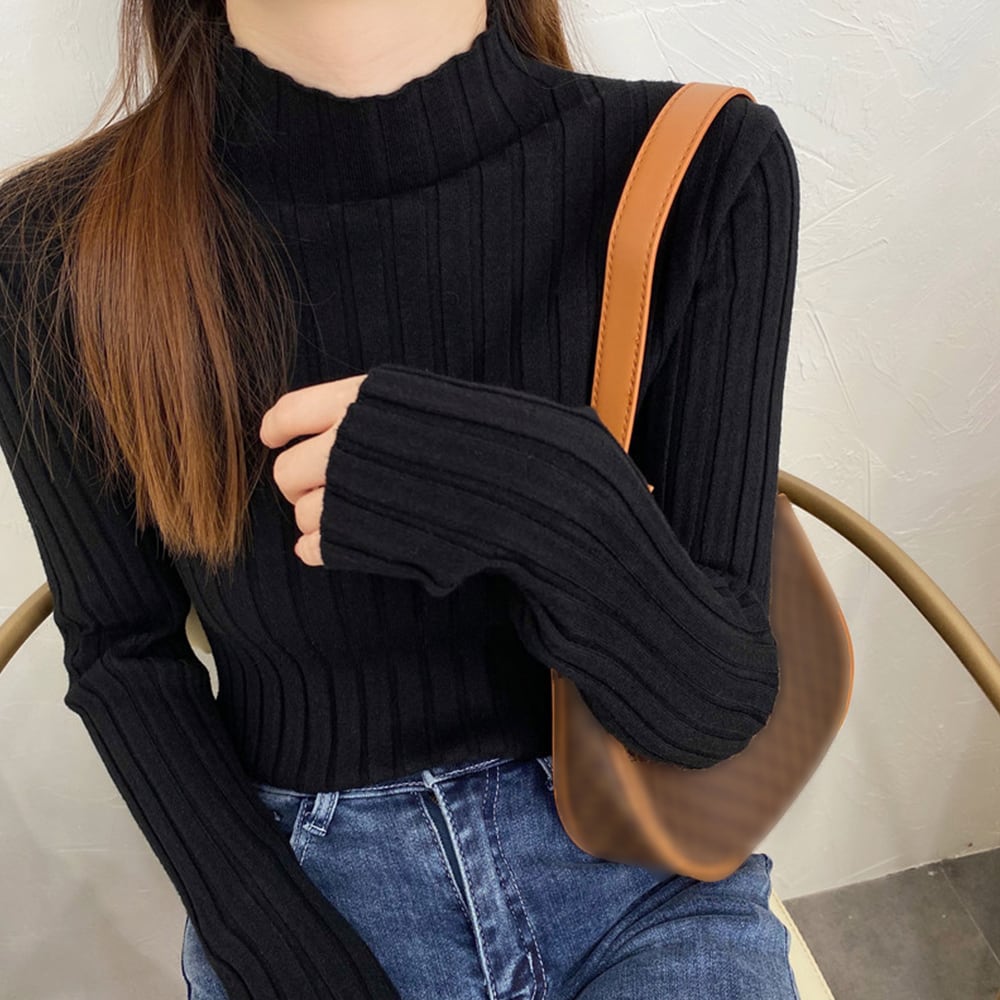 上品に詰まったプチハイネックや、スタイルアップが期待できる細身なシルエットが好印象