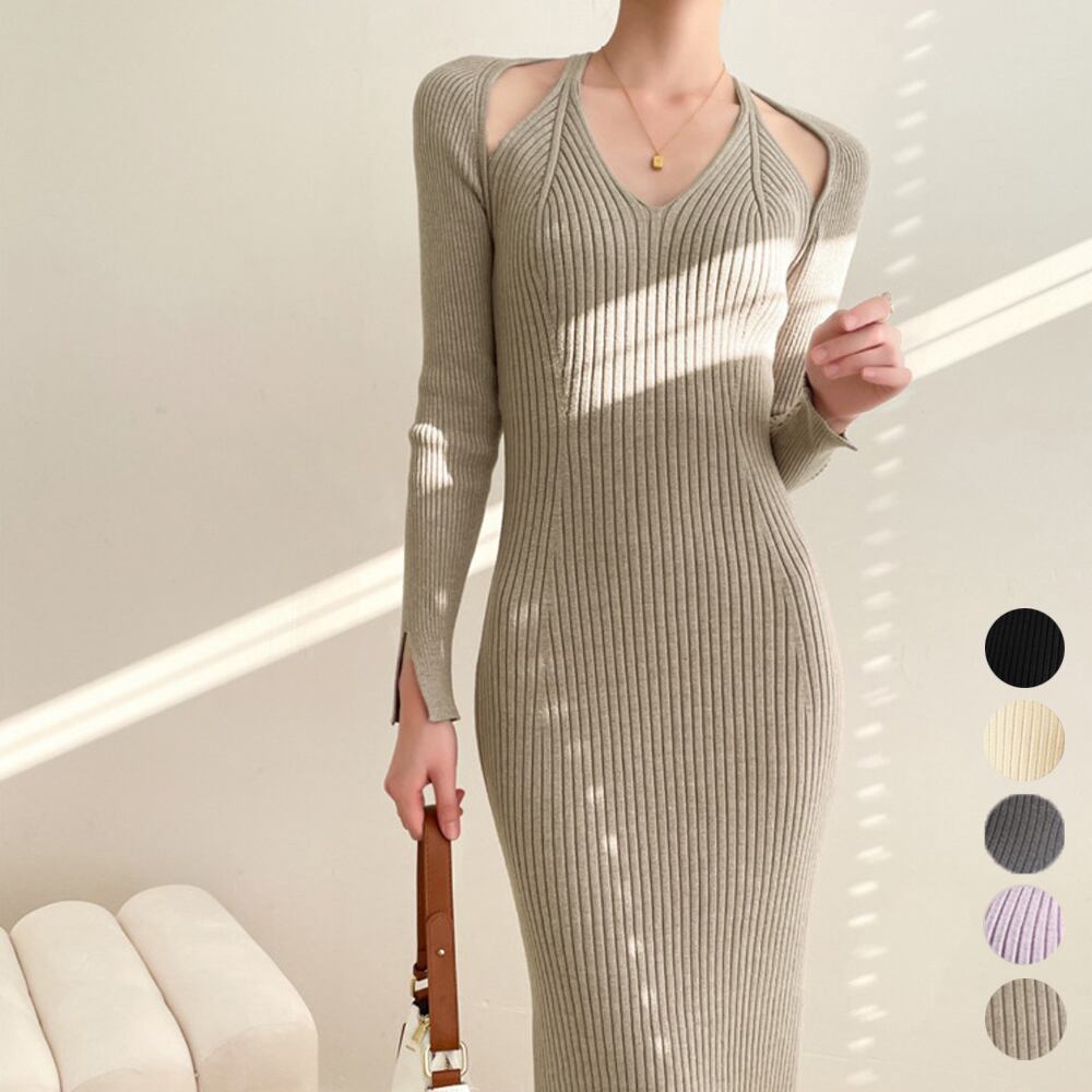 ニットワンピース タイト ホルターネック