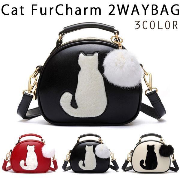 もふもふのファー付きねこ2WAYバッグ ショルダーバッグ ハンドバッグ VA016 レディースバッグ