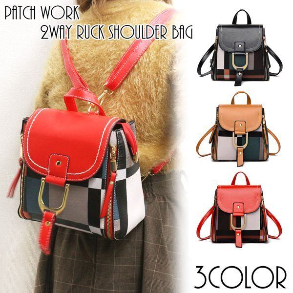 パッチワーク風で独創的な見た目がおしゃれ ミニリュックサック ショルダーバッグ VA004 レディースバッグ