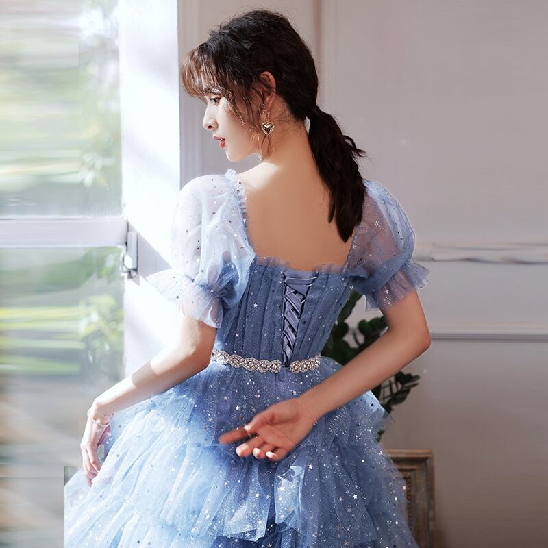 ★パーティー 結婚式 披露宴 ステージ 司会 演奏会 2WAY着 キラキラ星柄ラメ入り ティアード ドレス
