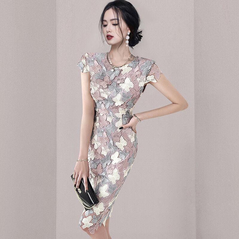 半袖ワンピース パーティードレス 蝶々 レディースワンピ バタフライ タイトワンピース 総レース