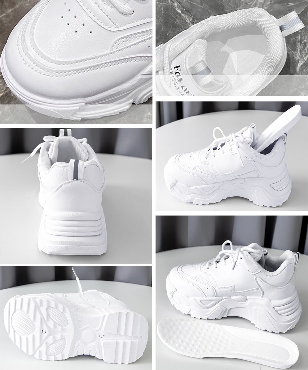 ボリュームスニーカー アウトドア 歩きやすいシューズ 通勤通学靴 履きやすい PUレザースニーカー カジュアルくつ 韓国