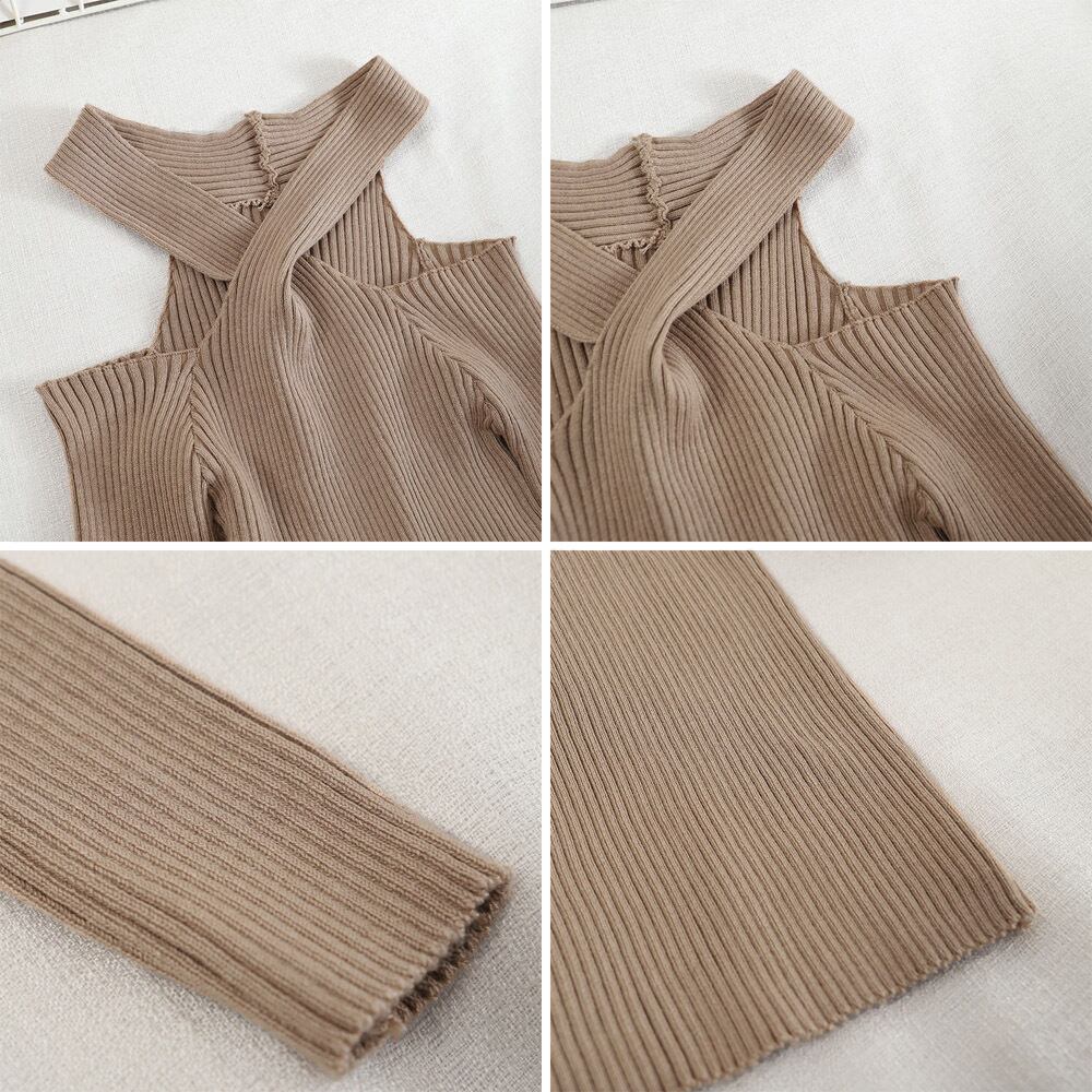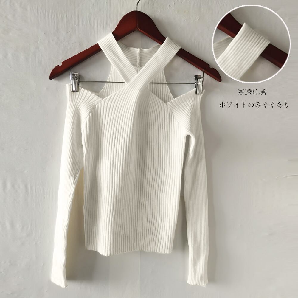 ニットトップス ホルターネック 肩出し