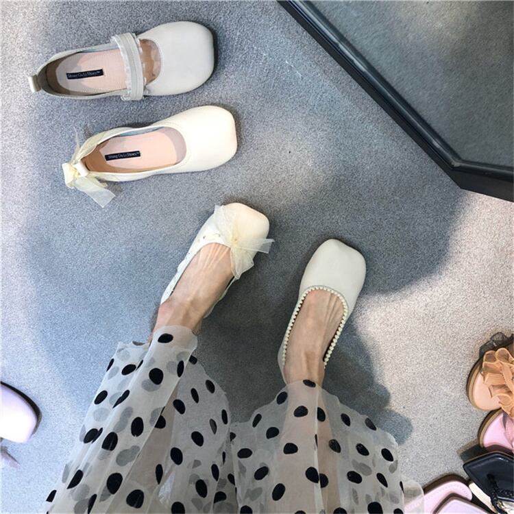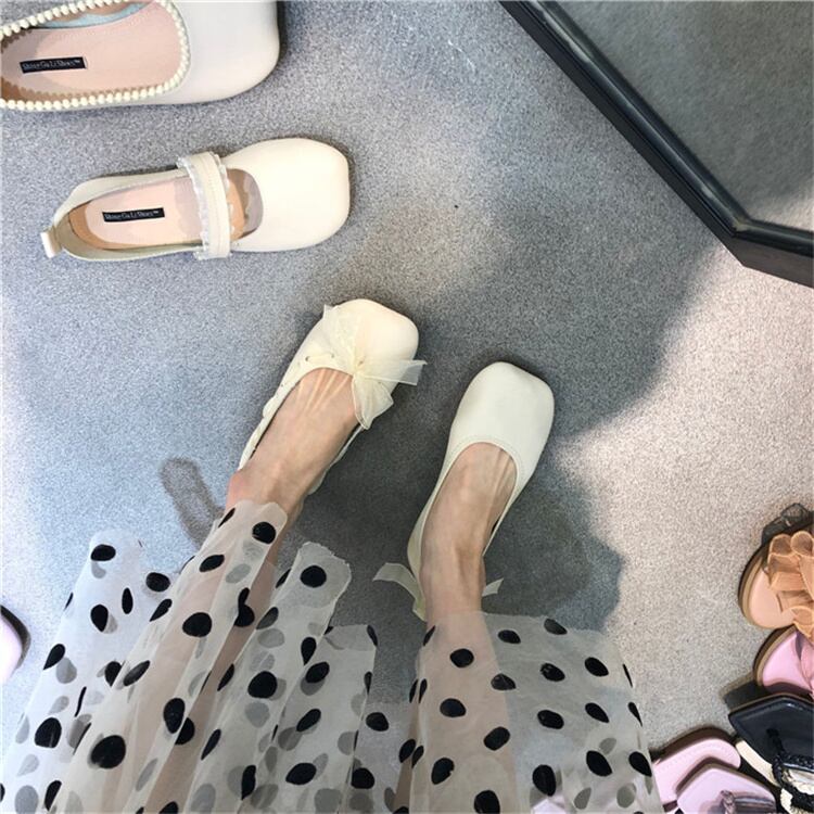 韓国ファッション スリム ソフトレザー フラットシューズ