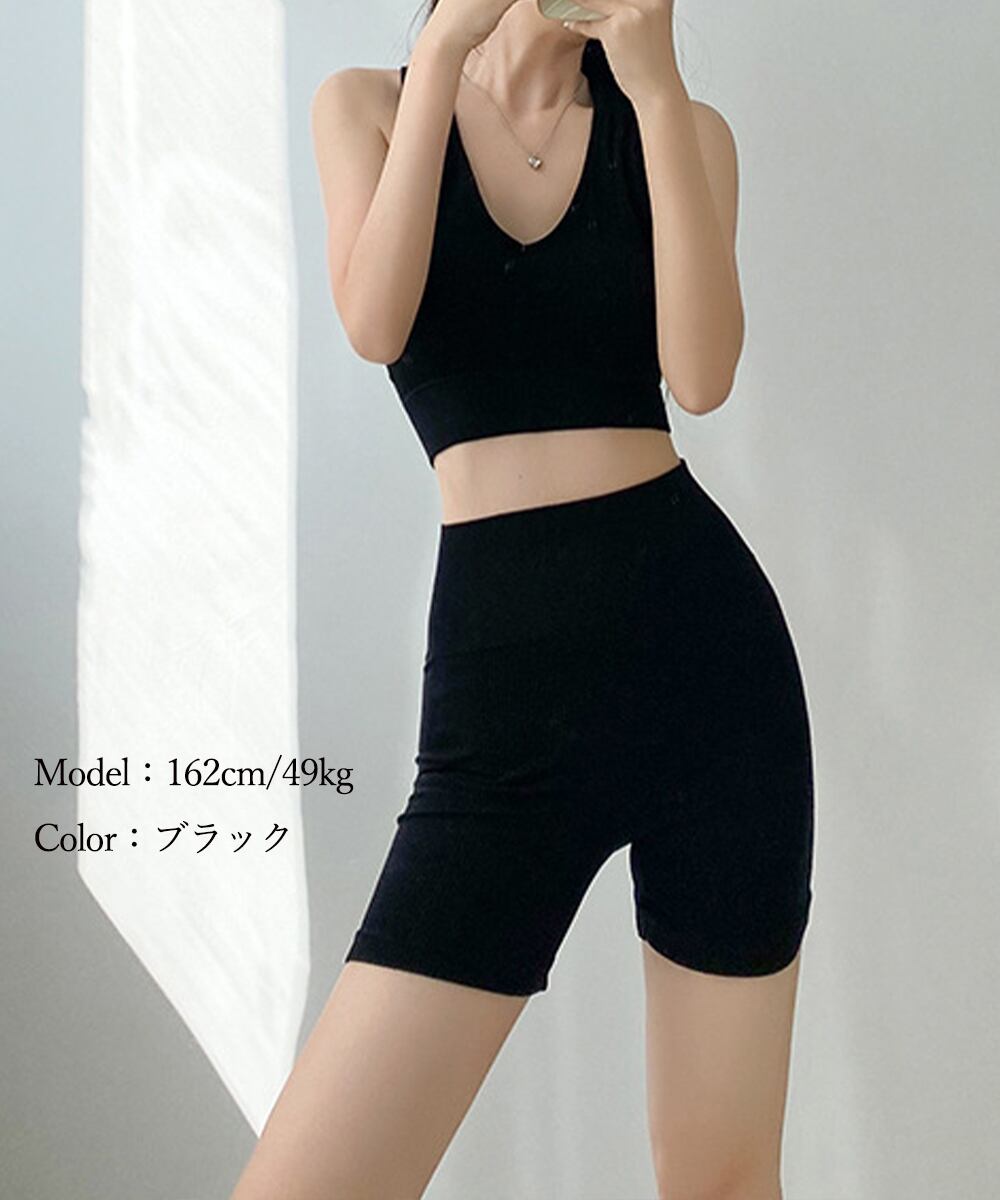 スポーツウェアジム ハーフレギンス快適 上下セットリブ素材